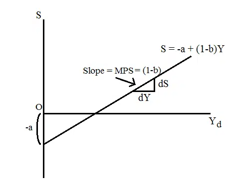 Bu denklemdeki -Co terimi, harcanabilir gelir sıfır da olsa geçmiş dönemlerin tasarrufları kullanılarak satın alınan reel GDP düzeyini temsil eder ve kısaca otonom tasarruf denir. Denklemdeki sDPI terimi ise, harcanabilir kişisel reel gelire bağlı olarak değişen tasarrufu gösterir ve kısaca uyarılmış tasarruf olarak nitelendirilir. Denkleme göre, harcanabilir gelir artınca uyarılmış tasarruf ve böylece tasarruf, harcanabilir gelirdeki artıştan daha az artar, 0 < s < 1. Ayrıca tasarruf şedülünde S kişisel tasarruf doğrusunun eğimi marjinal tasarruf eğilimine ( s ), doğrunun dikey ekseni kestiği nokta ile orijin arasındaki mesafe ise otonom tasarrufa ( tüketicilerin reel GDP sıfır iken geçmiş dönemlerin tasarruflarını kullanarak satın aldıkları reel GDP düzeyine, -Co )eşittir. S tasarruf doğrusu, otonom tasarruf – düzeyinde sabit iken harcanabilir kişisel reel gelir artınca uyarılmış tasarrufun (sY) ve böylece tasarrufun arttığını gösterir.